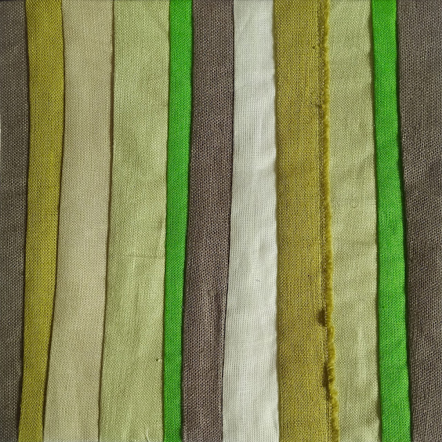 Proces powstawania lnianego płótna podzieliłam na 7 etapów. Kolejne bloki szyłam korzystając z różnych odcieni i faktur lnianych tkanin, stosując różne techniki szycia i pikowania…